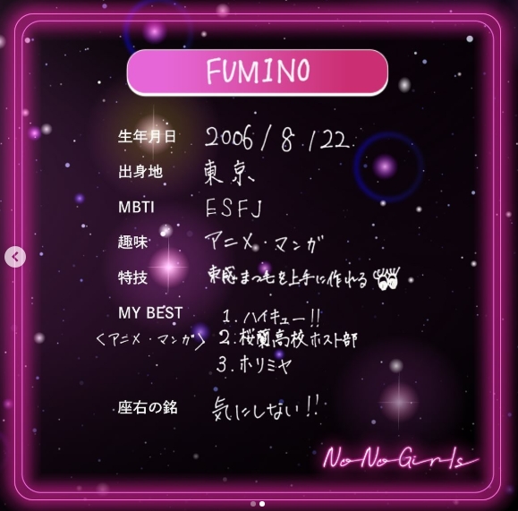 「No No Girls」のオーディションに参加された際のプロフィールでは、2006年8月22日生まれだということを公表されていました。